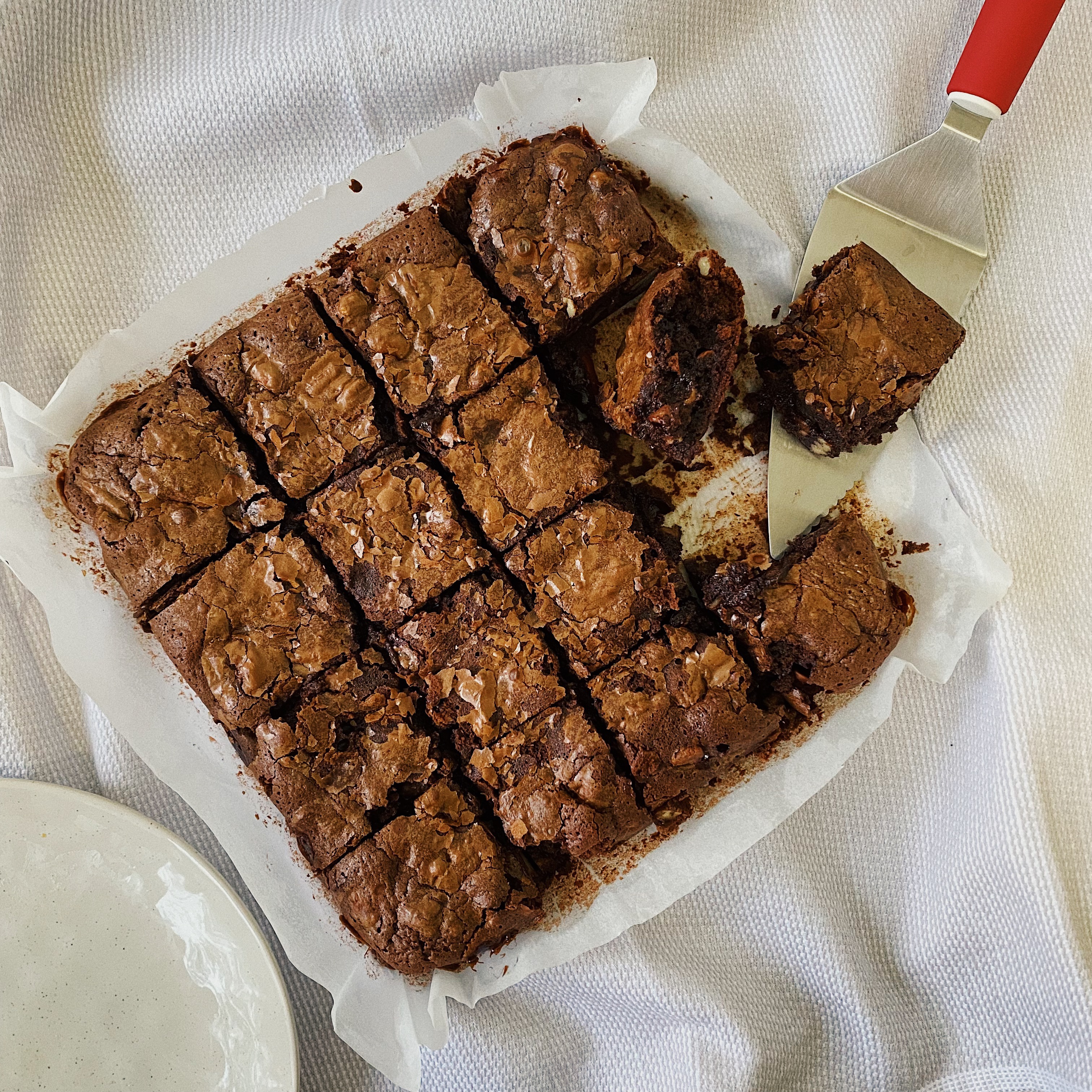 - Spread the brownie batter evenly into your prepared baking tin. Bake for 30 minutes (keep an eye on them, you do not want to overcook them! The middle should be jiggly, not set). Let it cool in the tin for 10 minutes, then remove from tin and cool completely on a baking rack.