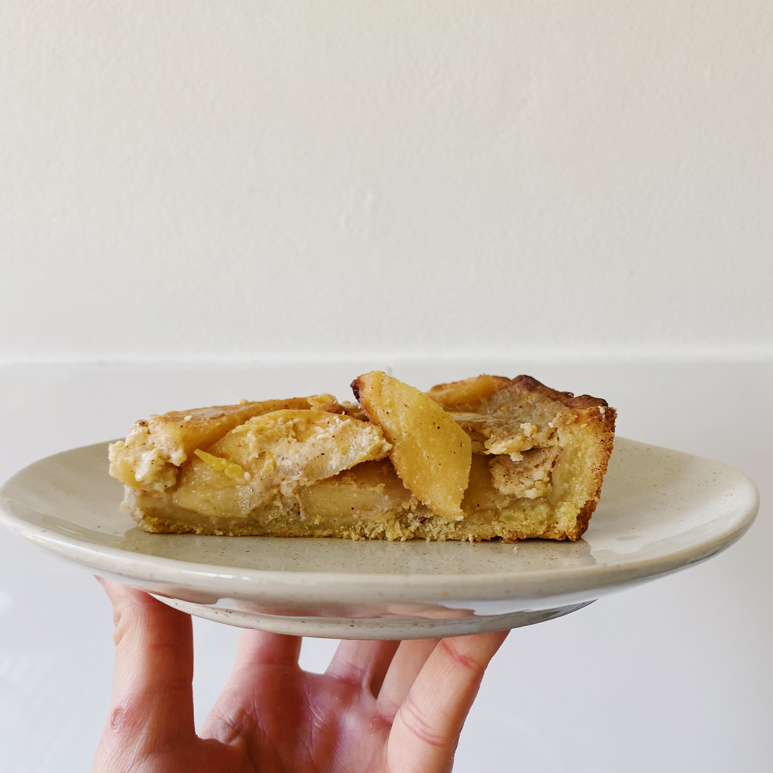 This classic French apple tart is based on a recipe from my amazing mum. It reminds me of home and I hope you find as much joy in it as I do. The sweet almond pastry is divine, very sturdy and soaks in all the delicious juices of caramelised apples and creamy egg custard. A very comforting bake, perfect for days snuggling up at home or sharing with your loved ones.
