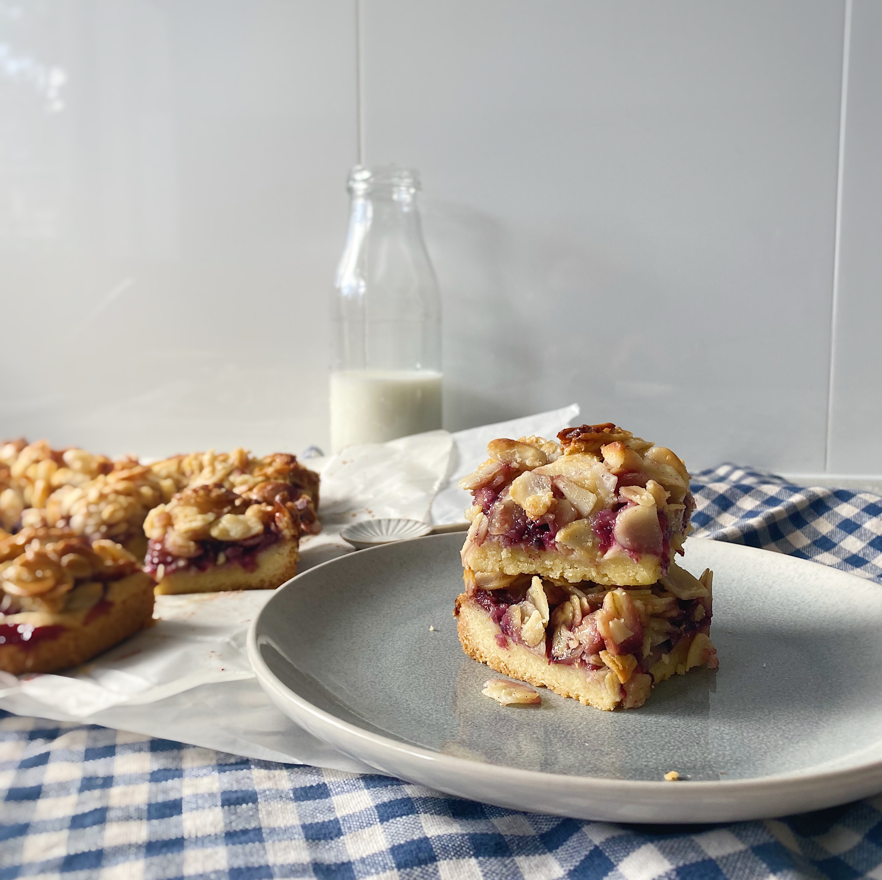 Another easy and fruity bake, perfect for picnics, afternoon tea or parties! Buttery and crumbly base topped with a blackberry jam and golden flaked almonds and oats. A delicious bake which will have you coming back for more!