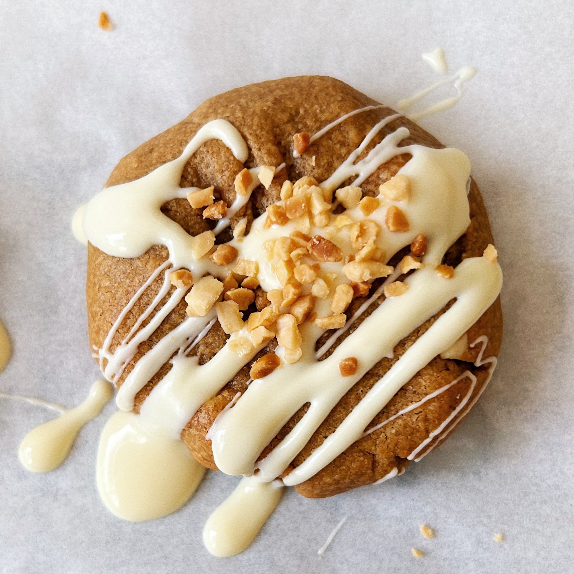 - Allow the cookies to cool slightly, then drizzle with melted white chocolate and sprinkle with crushed peanuts. Enjoy! :)