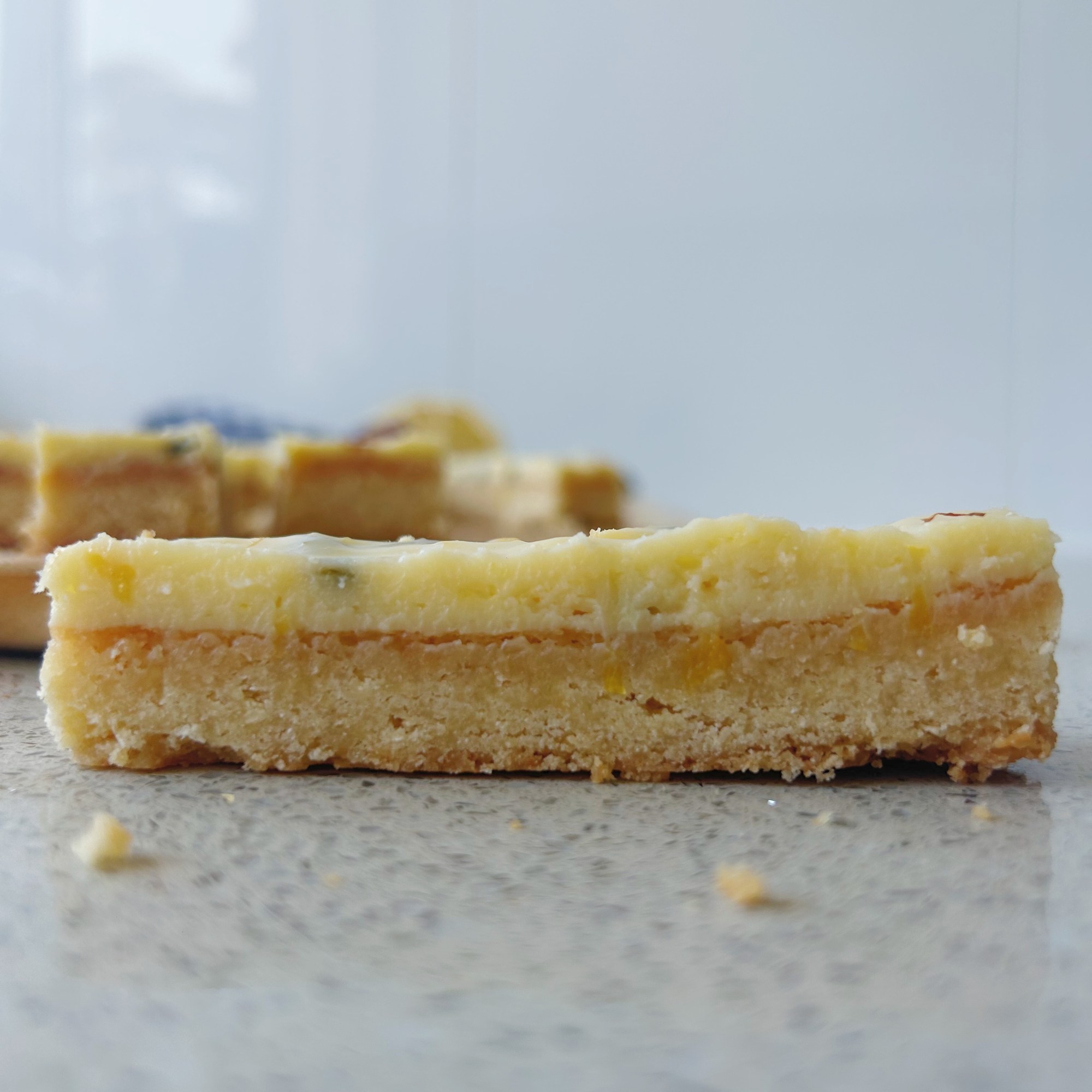 Time for a tropical tea break! This fruity slice features a buttery, tender, and slightly crumbly coconut shortbread base, topped with a luscious condensed milk layer packed with passionfruit and brightened with lemon zest. Refreshing, indulgent, and perfectly balanced, it’s a slice that keeps summer vibes alive with every bite.
